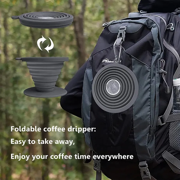 Coffee drippers are designed with modern silicone to last longer than more expensive glass/ceramic coffee drippers. Pour over coffee filter is made of high quality (304) stainless steel.which keeps the coffee grounds in the coffee filters while allowing all the coffee nutrients and flavored oils pass through for a better tasting cup of coffee.The silicone coffee dripper and the reusable coffee filter are married, the two of them are very suitable.This set is very space-saving, you can use it outdoors, and we will also give away a hanging buckle for easy hanging on your travel backpack.
