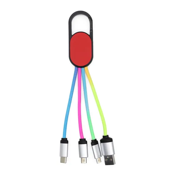 Stay connected with our versatile charging cable made of nylon braided material. Compatible with lightning port, Micro USB, and Type-C devices, this cable simplifies your charging needs. Plug it into a powered USB port and then into your device or smartphone. Charge multiple devices simultaneously when using an ample power source. Ideal for travel, this compact cable measures 1 1/4" W x 5" H, ensuring you stay powered up wherever you go.