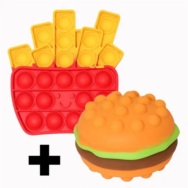 Safe Material,3D Hamburger fidget toy pack are made of BPA Free and Non-Toxic silicone,which is durable, clean and will not cause any harm.Hamburger Fries poppers are not easily deformed or punctured,and comfortable for touching,suitable for all kinds of people.Stress Reliever,Designed with cute food hamburger and fries shapes,press the bubbles down will make a slight pop sound,Which can ease your anxiety relieve stress and help to restore the mood.It is also a good toy to spend time,simply find the joy of childhood!Intellectual Trainer,Easy newly interactive squishes game,set your own rules and play games with friends or families.It can not only cultivate childrens creativity, improves mathematical and logical thinking but also improve relationships and increase intimacy.
