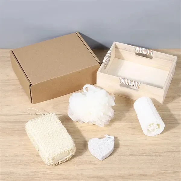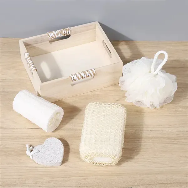 Elevate your bath routine with our 4 Piece Bath Kit, featuring a sisal sponge, bath sponge, loofah, and pumice stone for a thorough and rejuvenating cleanse. Each piece is designed to exfoliate, scrub, and pamper your skin, enhancing your spa experience at home. The kit comes with a customizable wooden tray, perfect for adding a laser-engraved logo or personalized message. Ideal for self-care or as a thoughtful gift, this set combines functionality with a touch of elegance, making every bath feel like a luxurious escape.