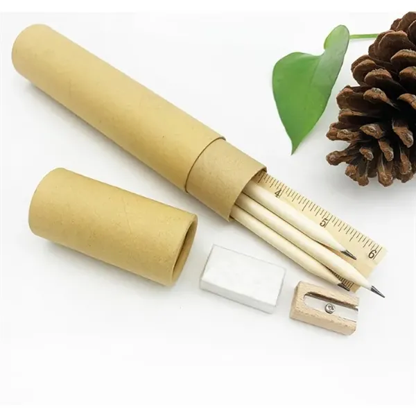 Go green with our biodegradable 6-in-1 stationery set! This eco-friendly set includes 3 pencils, a 6-inch ruler, a pencil sharpener, and an eraser-all neatly packaged in a 2-piece tube. Promote sustainability by printing your company name and logo on the tubes, pencils, rulers, and sharpeners. Ideal for school fairs, educational seminars, and eco-conscious promotions.