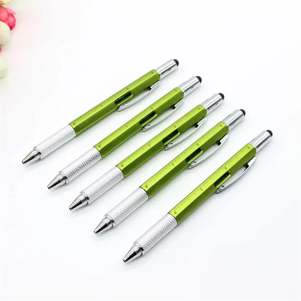 The main material of this multifunctional ballpoint pen is plastic. It can be used to write, but also as a ruler, level, touch screen, and screwdriver. It is very much used. It is a good gift for friends and colleagues.