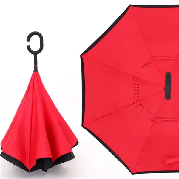 Introducing our Manual Open Inverted Umbrella with a durable metal shaft. This innovative design keeps you dry when closing, preventing water from dripping on you. The contrasting underside adds a stylish touch to the pongee material. With a convenient 29" closed size, this umbrella is compact and easy to carry. It also complies with Prop 65 regulations, ensuring safety. Embrace practicality and style with this unique inverted umbrella.