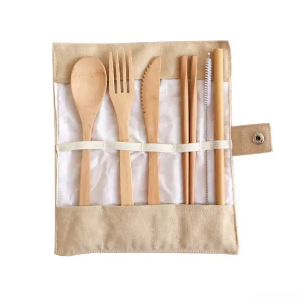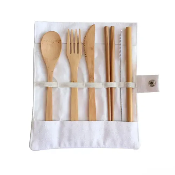 Embrace sustainability with our Bamboo Cutlery Set -- a natural, eco-friendly choice. This biodegradable set includes a fork, spoon, knife, chopsticks, straws, straw cleaner, and a convenient pouch. Perfect for picnics, travel, camping, barbecues, parties, school, office, or home use. Carry this eco-conscious cutlery set wherever you go, making a positive impact on the environment with each use.