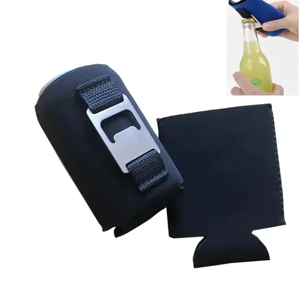 Always have a bottle opener close by with this novelty item. Folds flat - perfect for mailings. High quality wetsuit-like material. Fits snug on a can. Ideal for keeping drinks cold.