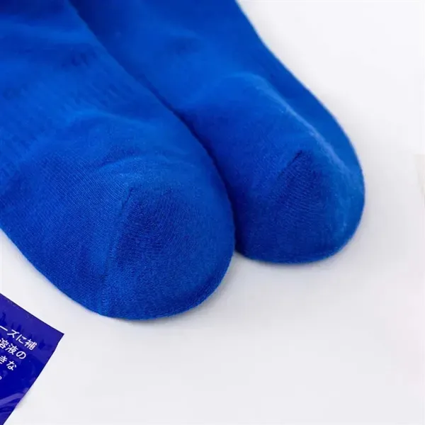Delight your clients with these versatile, breathable socks. Composed of 70% cotton, 26% polyester, 2% rubber, and 2% nylon, they offer simplicity and comfort for both men and women. Recommended for hand washing to maintain quality. Ideal for tradeshows or conferences, and can be customized with your company name or logo for enhanced brand visibility. A superb promotional choice.