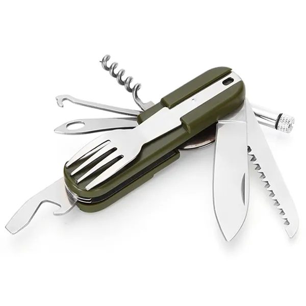 Multi-functions including knife, fork, spoon, bottle opener. Detachable into two sections for easy use. Portable, durable, lightweight, and compact. Modern design, reasonable price, good quality. Easy to travel, durable, lightweight, environmentally friendly. Custom logo available. More than 5000pcs by sea.