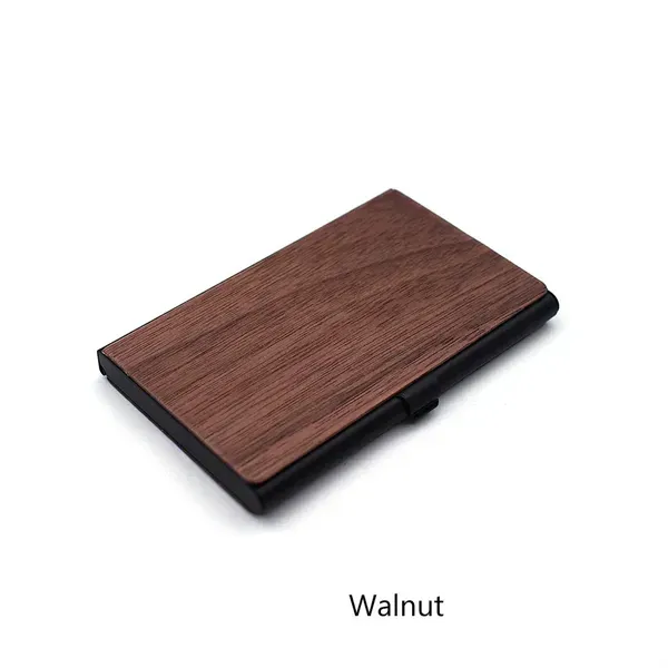 This custom metal and black walnut card holder combines elegance with functionality. Crafted to hold up to 15 business cards or 5 credit cards, it is designed for professionals seeking a stylish way to carry essential cards. The sleek design and durable materials ensure longevity and a professional appearance. Ideal for corporate gifting, the holder can be personalized with engraved logos, making it a perfect choice for enhancing brand visibility or presenting as a personalized gift. Whether for executives, entrepreneurs, or professionals, this card holder offers a sophisticated solution to organize and showcase business essentials.