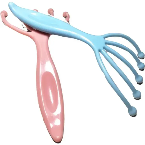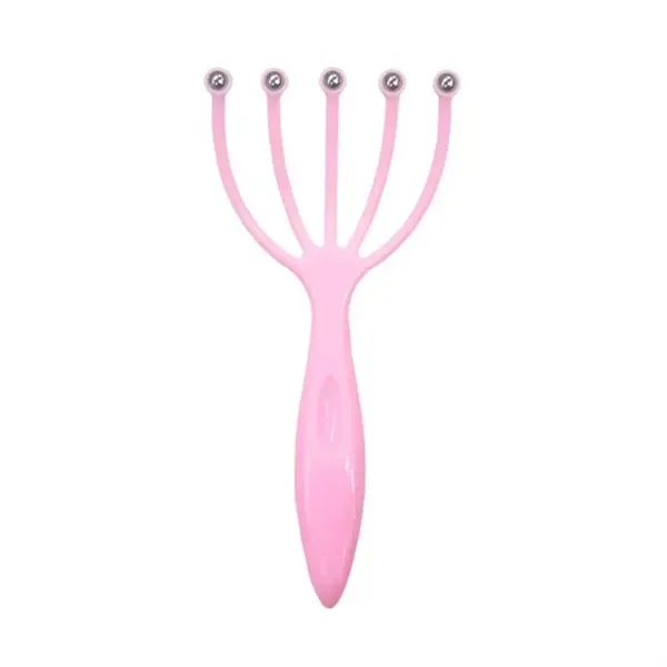 This handheld plastic massaging comb features five fingers, each with a 360-degree rolling steel ball. Ideal for scalp or body massage, it promotes circulation and reduces muscle tension. The metal balls provide a cool, calming sensation on the skin, making it an easy-to-use tool for comfort and stress relief.