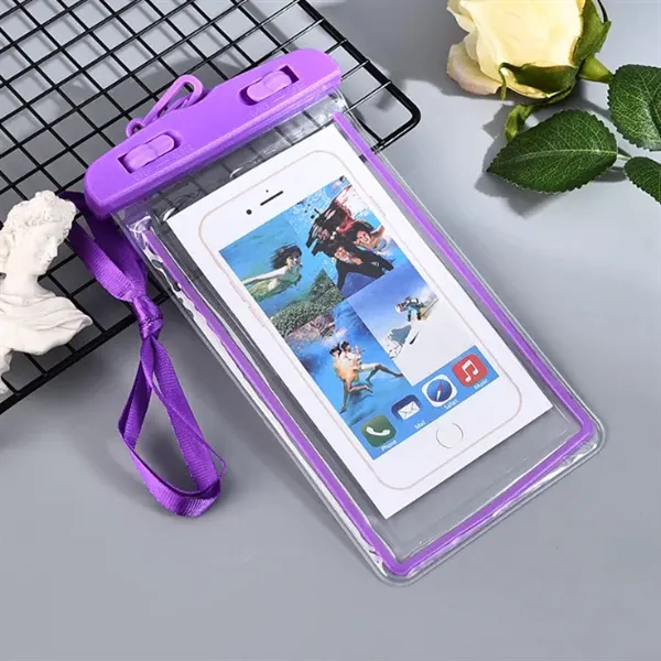 Introducing our Waterproof Pocket with Sling, crafted from eco-friendly PVC and ABS materials. Ideal for the beach, lake, and more, it keeps smartphones and valuables like keys and wallets moisture-free. Equipped with 4 light stripes, it illuminates at night for added visibility. With the capability to keep smartphones dry even underwater up to 30 meters, this pocket is both practical and versatile. Dimensions: 4 1/2" L x 8 1/4" W.