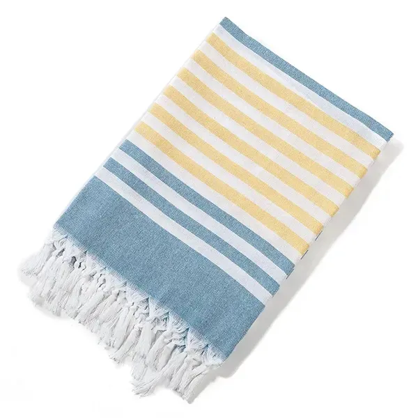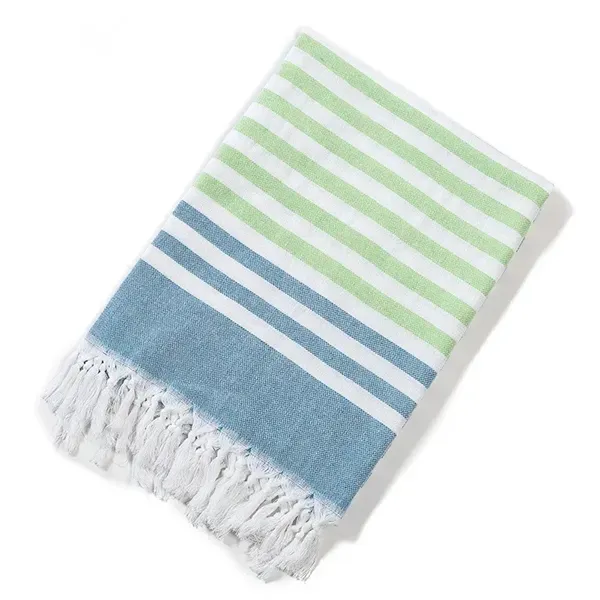 This Cotton Turkish Beach Towel offers comfort and durability.Crafted from high-quality cotton, it features an absorbent and soft texture.Perfect for beach outings, poolside relaxation, or spa visits, its quick-dry feature ensures it#039;s ready for use after every dip.Available in various colors, it#039;s customizable with your logo, making it a fantastic promotional product.Get your custom towel to showcase your brand, a perfect addition to any beach or travel set.