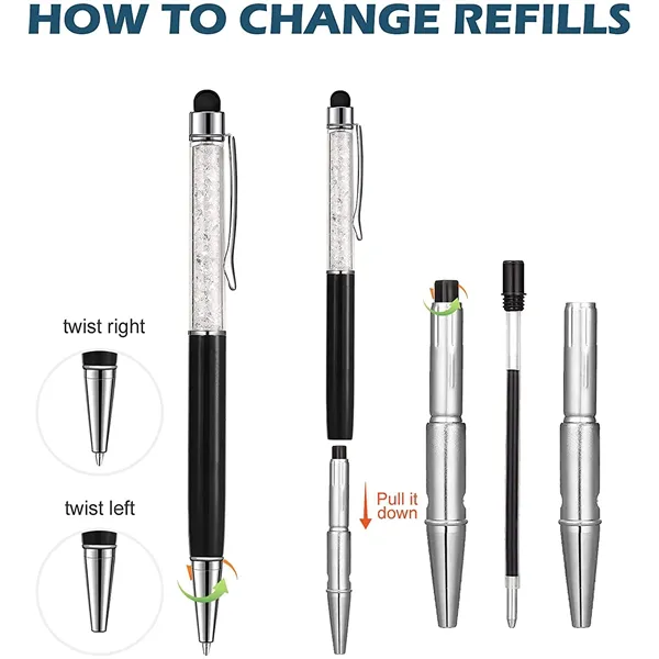 The slim stylish pen's body is made of sturdy aluminum, making them strong enough to resist impact and deformation; And the mini stylus pens are lightweight etc. The 1 mm black refills can be applied to write message on most surfaces without hindrance. These stylus tip pens are compatible with many touch screen devices of various brands around the world for your convenience; These black ink medium ballpoint pens are made from metallic material, so they are sensitive, anti-scratching, fingerprint-proof and smooth, and the fine tips allow you to achieve more details in your note-taking and art projects. 5.7" W x 0.4" H