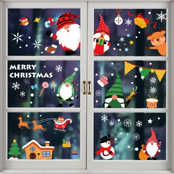 Decorate your space with festive Christmas window clings made of PVC (electrostatic membrane). Featuring Santa Claus, Snowman, Reindeer, Elf, and snowflakes. One-side printed, easy application on smooth surfaces like glass doors. Ideal for Christmas, winter parties, birthdays, and family celebrations. Measures 11.8#039;#039;W x 7.8#039;#039;H.