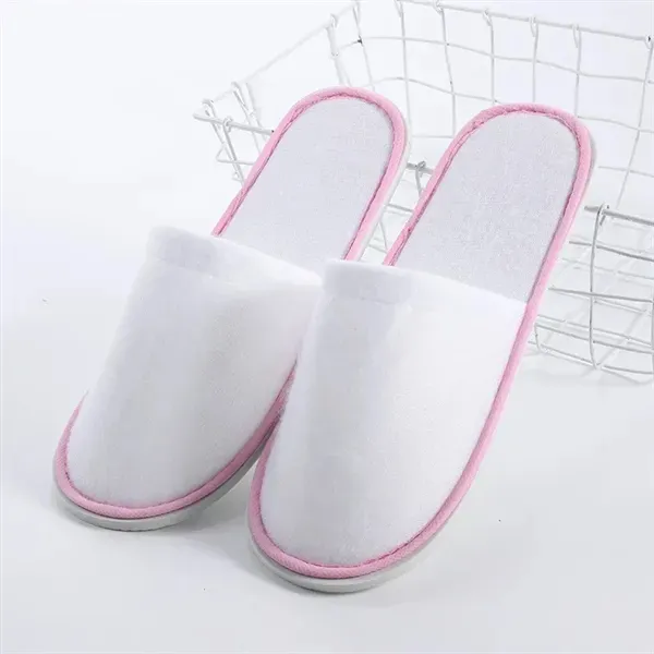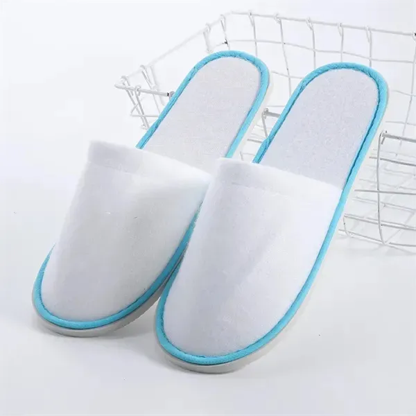 These disposable hotel slippers, crafted from soft, comfortable velvet. Ideal for hotels, spas, tradeshows, or conferences, they offer a blend of style and comfort. Customize with your company name or logo for increased brand visibility.