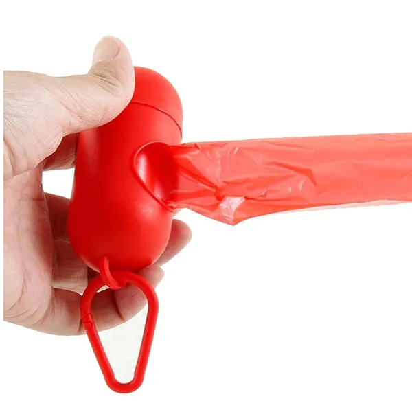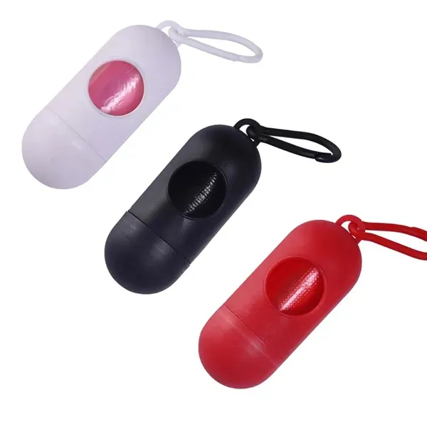 The dispenser size is 3 3/4 X 1 5/8 inch, and includes 1 roll of poop bag. Durable, lightweight and easy to carry. Bring you the convenience and enjoy walking time with you pet.