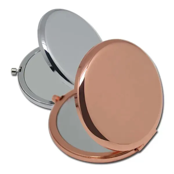 This folding mirror is in the diameter of 2.6 inch, can easily hold it on palm, or put in pocket, purse, handbag, use it on any occasion. High-quality metal mini mirror with a sturdy frame, clear mirror, and push-button switch. Sturdy, durable, and easy to open.The smooth surface work well for quick makeup. Double-sided mirror that meets all your cosmetic needs. The regular mirror is ideal for viewing the entire face closely, while the 2X magnifier works great for mascara, tweezing, plucking, flossing, etc.DIY friendly. Use sublimation print or laser marking patterns on it to create a unique gift. Customize gifts for your mom, father, daughter, friend, wife, etc., to make them feel special.