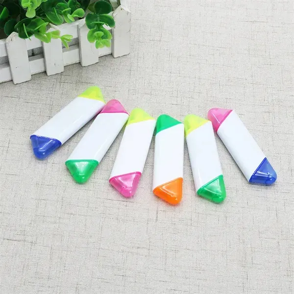 Our Dual-Ended Highlighter features a versatile chisel-tip design in vibrant pink and yellow hues, ensuring crisp and clear marking. Its secure caps maintain the freshness of the highlighters for prolonged use. It#039;s crafted to be in compliance with Prop 65 standards. With dimensions of 3.8" L x 0.5" W x 1" H, this highlighter is the perfect addition to your school or office supplies.