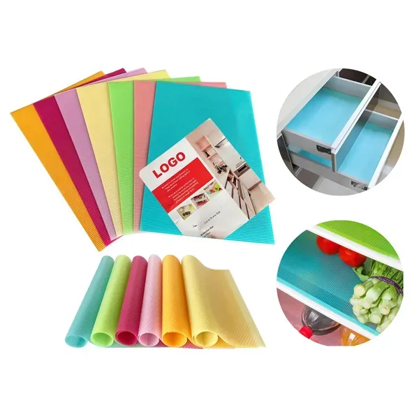 The EVA Refrigerator Mat is a versatile, high-quality solution for keeping your fridge and drawers clean and organized. Made from durable, waterproof, and non-slip EVA material, it provides excellent protection against spills and stains while ensuring easy maintenance. Its flexible design allows for a custom fit, and the mat#039;s surface is easy to clean and resistant to odors. Enhance your brand visibility with custom logo options on the paper card. Ideal for home or commercial use, it combines practicality with a sleek look.