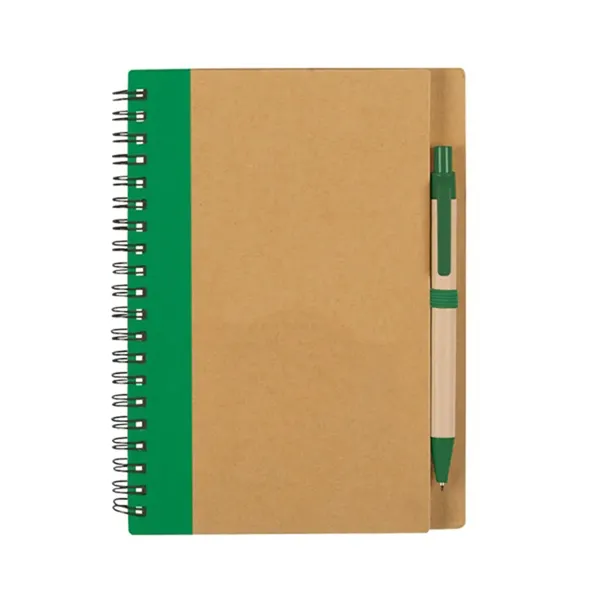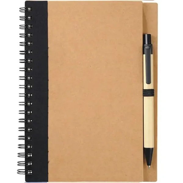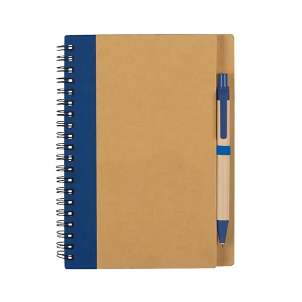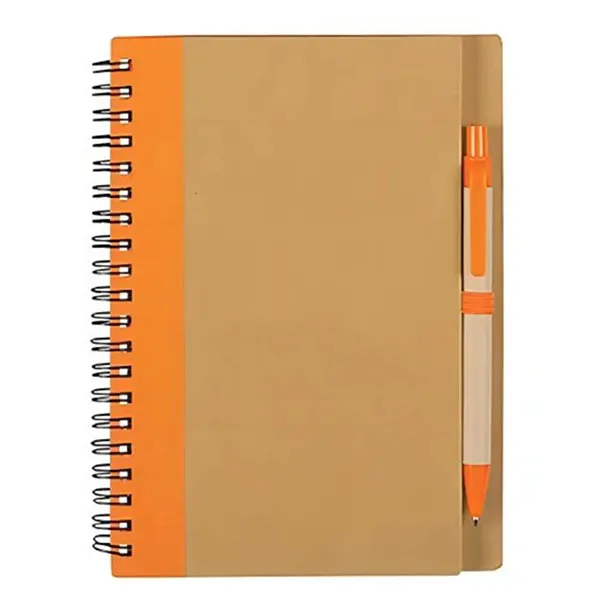 This spiral notebook features 70 lined sheets and kraft paper cover. Held together by a double-wire spiral and comes with a color-matched ballpoint pen, this two-tone notepad is ideal for offices, schools, tradeshows, and giveaway events. Perfect for note taking and classroom use. Custom size is available. 5" W x 7" H