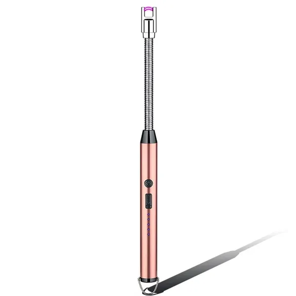 The dual arc pulse electric lighter is rechargeable with connection of USB and type-C. The lighter can display battery volume by the LED lights on the handle. The flameless lighter has flexible long neck, which is prefect for different lighting scenarios. The 2-steps lighting design is safe and easy to use; first switch on the safety control button, then press and hold on the ignition button, the electric arc heating will come right away. It is great for promoting your brand and company name.