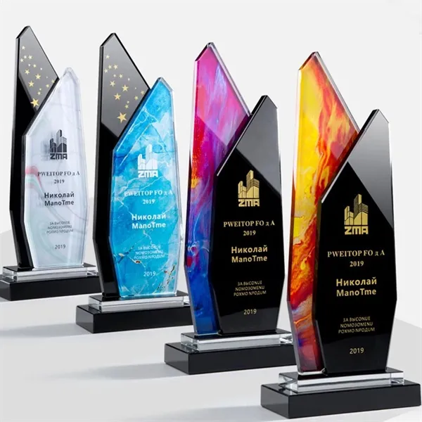 The striking angular shape of the Angular Award makes it a focal point in the office! Perfect to showcase a recipient#039;s name.