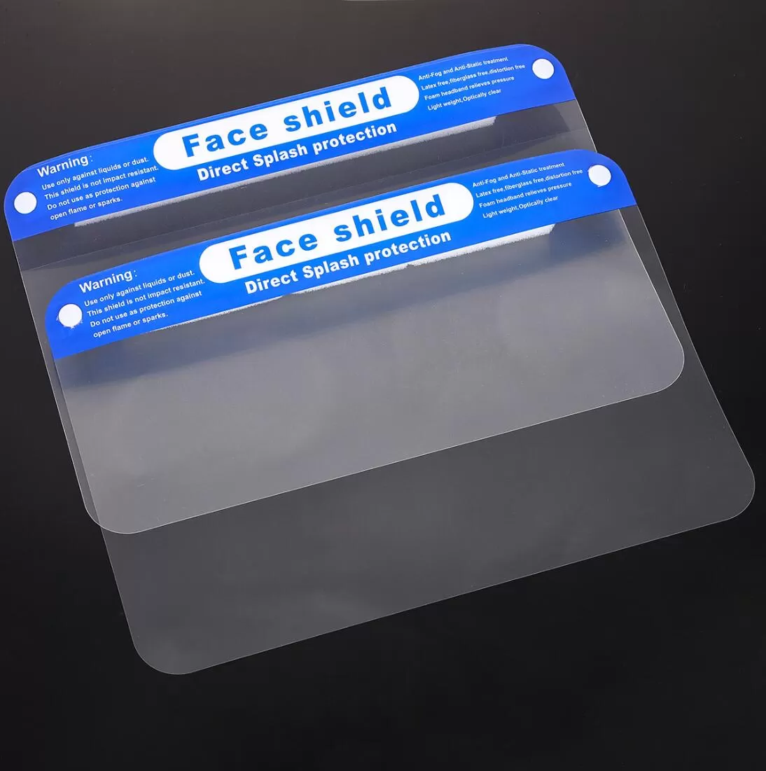 Made of PET, elastic band, foam and PC. Vented foam design for increased air flow and comfort. Lightweight and reusable. Excellent protection against potential contamination from blood pathogens, body fluids, or harmful chemical splash. 12.5" L x 8.6" W