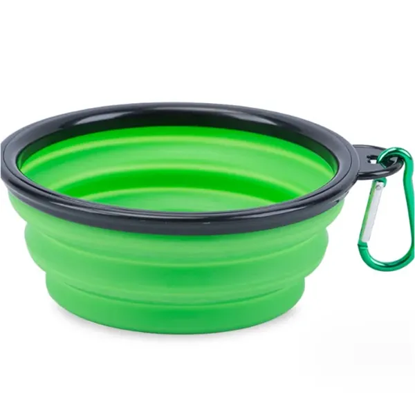 This foldable pet food bowl is made of environmentally friendly TPE material. Portable folding bowl with carabiner clip for travel, hiking, hiking. Easy to carry anywhere for your best friend. Print your logo with larger print space. Everyone who uses it knows your company name, a great promotional product. Top Diameter: 5.12" Bottom Diameter: 3.53" Height: 2.16" Folded Height: 0.59"