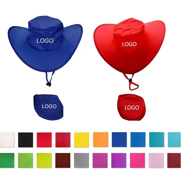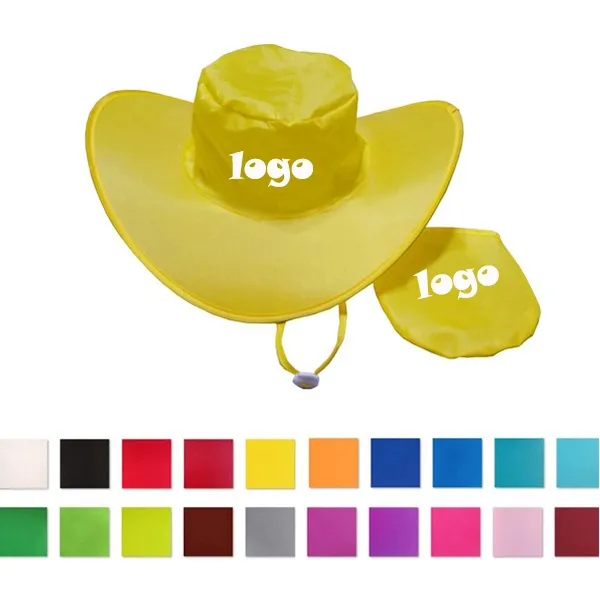 Cowboy Hats is made of 190T polyester with drawstring closure. These bucket hats can be folded and packed into a small pouch, light-weight, durable and easy to carry with. Have various colors available for your choice. Ideal for all kinds of outdoor activities and events. Your company logo can be imprinted both on the hat and pouch.