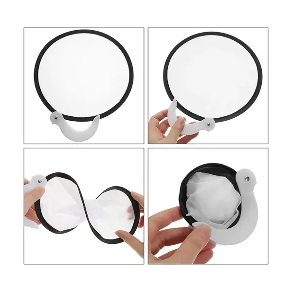 This full-color 8" D foldable chill fan can be twisted into 4". You can display logos or images on both fan and pouch. There is a handle for a better grip and easier fanning away hot flashes in summer. Perfectly for sporting events, concerts, festivals, and other shows and events.