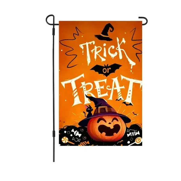 This festive Halloween garden flag, made from polyester ramie, features a vibrant orange design with a "Tricks or Treats" monogram. It#039;s a unique accent perfect for enhancing outdoor spaces like backyards, lawns, gardens, decks, patios, porches, balconies, or verandas, and even as mailbox decor. This flag not only adds a charming touch to Halloween celebrations but can also be customized with different patterns.