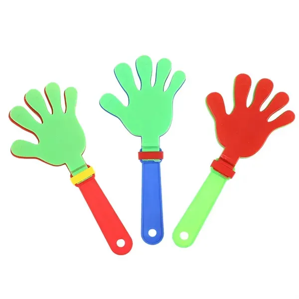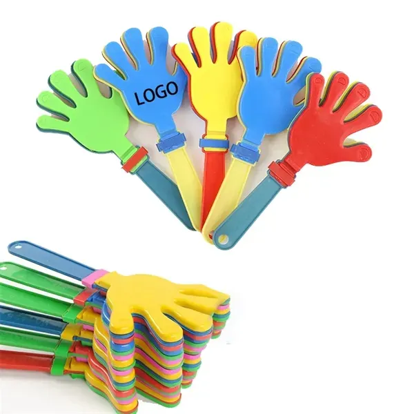 Get a fast round of applause when you advertise with this colorful hand clacker! Made of plastic and measuring 7", this custom noisemaker is a fun way to celebrate any event! Customized with your organization#039;s name and logo, this item is perfect for promoting a school fundraiser, holiday party or community arts project. It#039;s also an ideal giveaway for tradeshows, conferences, sporting events, pep rallies and much more. This delightful cheering accessory will bring a smile to the faces of both the young and old!