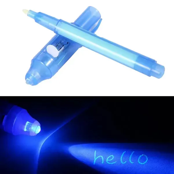 This magical invisible ink pen will write your secret message. Once your secret message is written with this invisible ink pen wait a few seconds, then shine the blue light from the cover of the pen .Kids will love these spy pens. Kids love using this kind of pen to keep their secret and play detective spy games. Invisible pen brings you an amazing variety of fun activities.