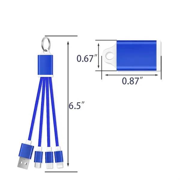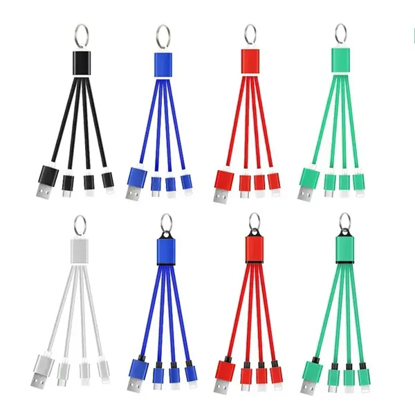 This adjustable 3-in-1 aluminum charging cord and easily stored in a backpack, purse, pocket, or briefcase. It#039;s compatible with Type C, IOS for iPhone, and Micro USB. The loop end can hang on a hook or attach to a favorite keychain. Choose from various colors and engrave your company logo or message to create a branded item that makes a great premium or giveaway.