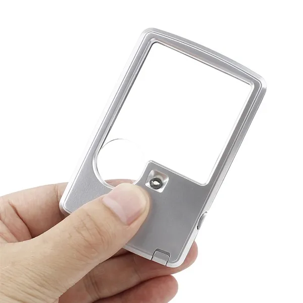 Card size magnifying glass easy to put in the pocket, leather sheath protects against wear and tear. Magnifying glass 3 x and 6 x small magnifying glass, magnifying glass with the light, suitable for reading, jewelry, experiment, investigation, appreciation of paintings and prints. It#039;s a high definition one pocket magnifier, with pure white LED light source, use without ambient lighting restrictions.