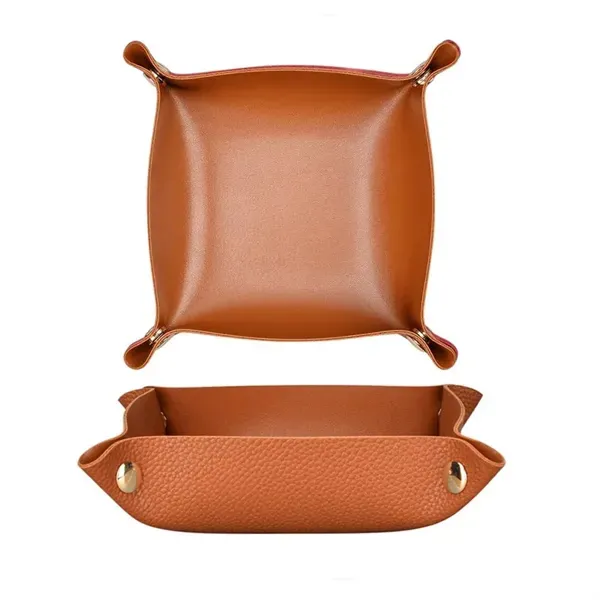 This storage box is composed of leather and metal buttons. It can store cosmetics, jewelry, keys, remote control panel and other small things. It is both storage and decoration, adding a color to the ordinary daily life. It is a good choice whether it is placed on the desk or in the living room at home, in the hallway for keys, cosmetics, small accessories, and sundries.
