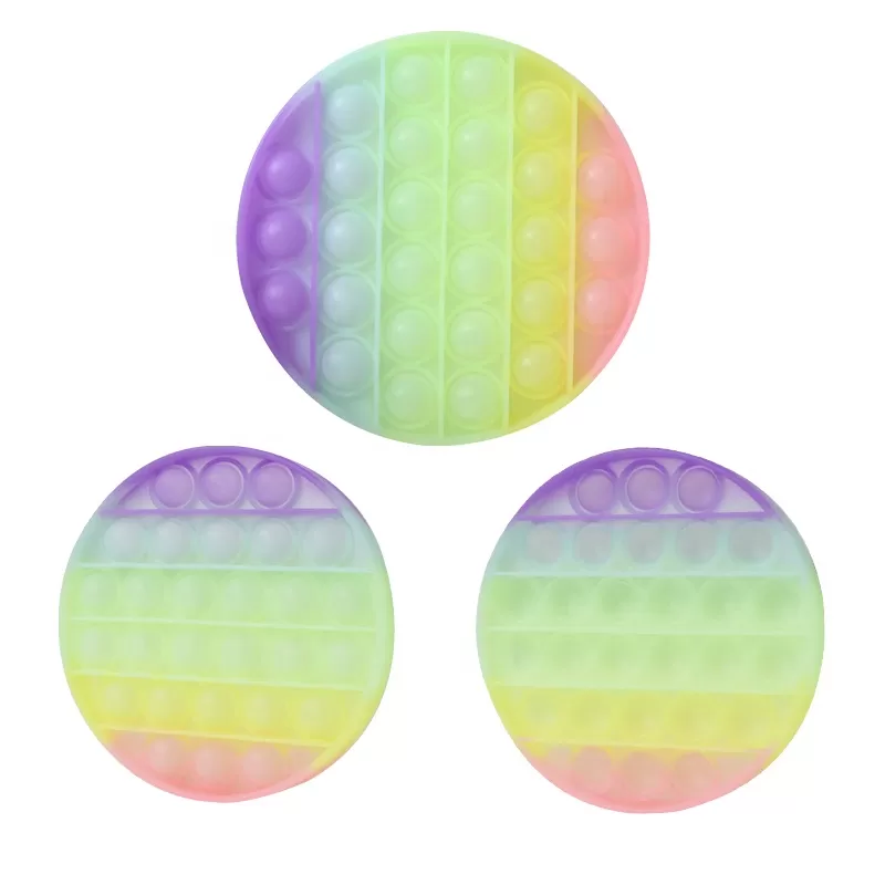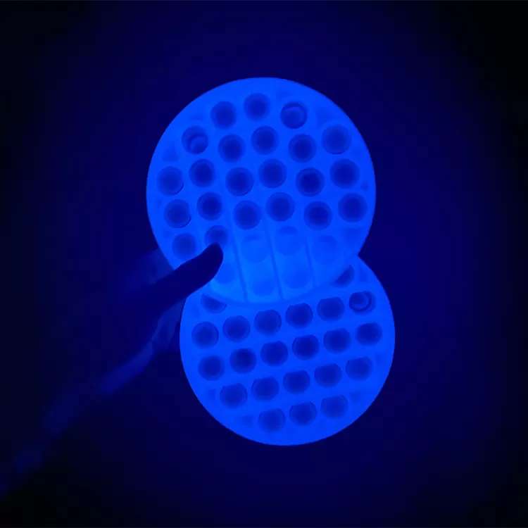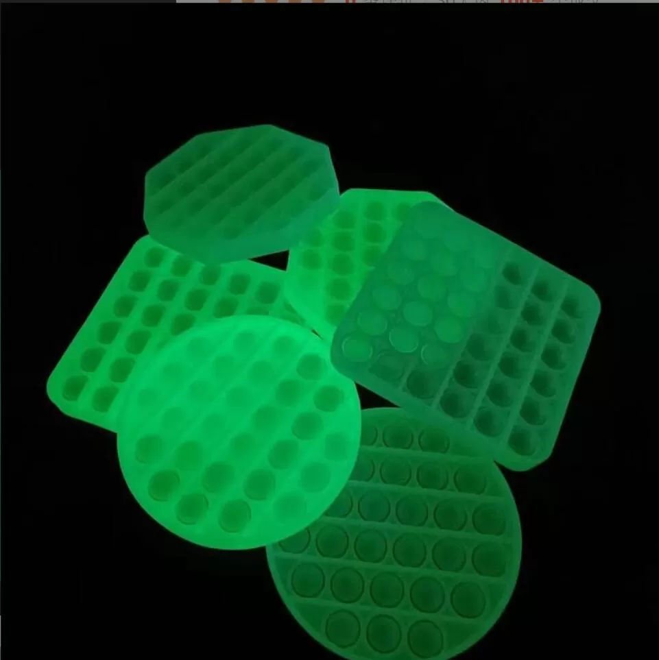 Luminous round push pop bubble is novelty toy that help relieve stress, keep focusing, anxiety, ADHD, Autism, etc, games that the elderly, children, and adults can play, and it can develop brainpower, ability of cultivating and logical reasoning skill. It made out of eco-friendly silicone, light weight with small size, easy to carry, glow in dark design that is bright in the dark. It can be used as coaster, it is waterproof, dries quickly .4.37" L x 4.37" W x 0.56" D