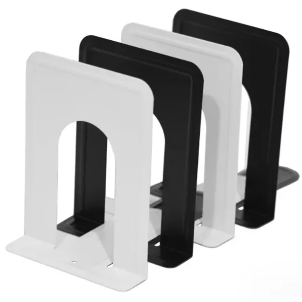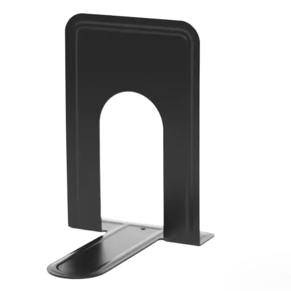 Introducing our Iron Bookends, crafted with a sturdy metal construction to provide robust support for heavy-duty applications. The classic black color and basic yet effective design ensure longevity and durability. These bookends are strong and weighty enough to keep your books, CDs, and DVDs neatly organized and upright. The super smooth and flat high-quality paint surface, along with round edges, prevents scratches or scuff marks on your shelves or books. Their thoughtful design allows you to move the bookends without harming your desk surface. With dimensions of 6.6"H x 4.9"W x 5.7"L, these bookends combine practicality with a timeless aesthetic, making them a reliable choice for any setting.
