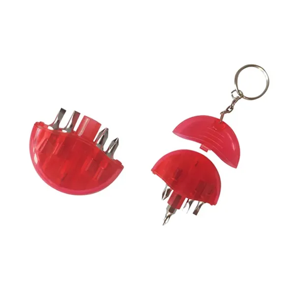 This round-shaped keychain, constructed from customized ABS plastic, offers practicality and convenience. It includes four mini carbon steel screwdrivers, featuring two slotted and two Phillips bits, making it perfect for daily household or outdoor use. With its compact and portable design, it#039;s a handy tool to have on hand.