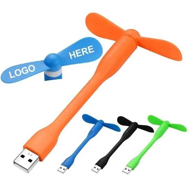 This portable USB fan, available in multiple colors and measuring 3 1/2" x 5 5/8", features a flexible body ideal for safe use and customization with brand logos. Suitable for use with any USB outlet, it#039;s perfect for travel, office, or home use during summer.