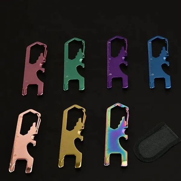 Multi function tools kit, combines bottle can opener, screw driver, staple remover, ruler, wrench and carabiner in one. Steel construction, Pocket sized for easy carrying and use. Ideal for key holder, key tag, key chain, key ring, cyclical, outdoor, hunting, safety program, emergency, travel, camping, and self promos.