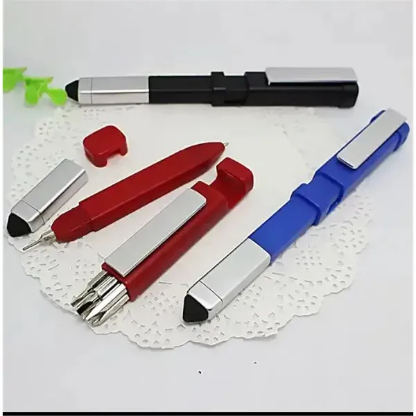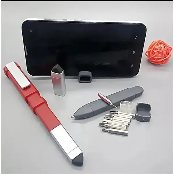 Our multifunctional ballpoint pen, a versatile tool combining a screwdriver, touch screen pen, ballpoint pen, and mobile phone bracket in one. It boasts a snug fit, ensuring stability and durability, reducing fatigue during use. It doubles as a mobile phone stand, offering simplicity and convenience, with four screwdriver heads included for easy access. Crafted from high-quality ABS material, it exudes quality and a premium feel. With vibrant colors and an elegant design, it radiates vitality and sophistication, making it your top choice.