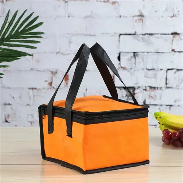 Stay cool and eco-friendly with our Durable Cooler Bag. Made of 80 GSM Non-woven Polypropylene exterior and featuring a thermal food-safe foil lining, this bag is both reliable and environmentally conscious. The reinforced webbing handle (25"l x 1"w) ensures easy carrying. With a capacity for 6 cans and dimensions of 8" W x 6.5" H x 5.5" D, it#039;s a perfect companion for outings. Complies with Prop 65 for added safety.