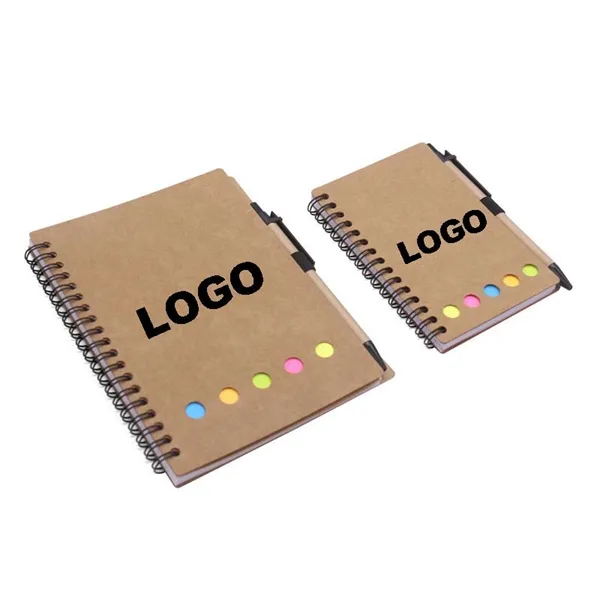 This item approx 4.5" x 5.5", spiral binding design, lightweight and portable size. This book has 25 pieces square yellow sticky notes and 5 colors sticky page markers, total 125 peces, 25 pieces each color,1 pen and 70 sheets white lined paper. Perfect for journal, diary, business, travel and more.