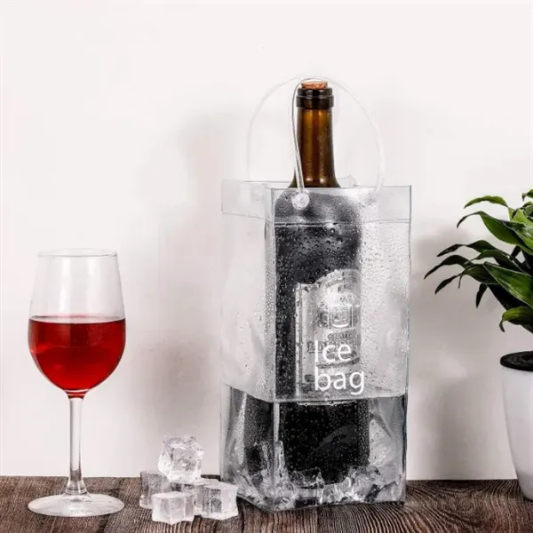 Elevate your marketing campaign with our wine cooling tote bag! Crafted from 0.5-millimeter clear PVC material, this bag is heat-sealed to prevent leakage. It#039;s an elegant solution for keeping your beverages cool at dinner parties, barbecues, holidays, and celebrations. Additionally, it doubles as a beautiful gift bag, fitting most regular-sized wine or liquor bottles. Make a lasting impression with this stylish and practical accessory.