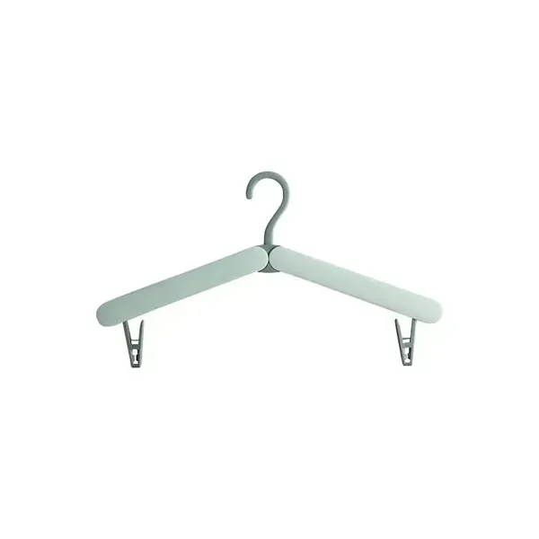 The innovative lightweight folding design hanger can be put into the small pocket of your travel luggage. The compact folding shape is about the size of your palm, which is convenient for you to carry. The travel hanger is made of strong and durable ABS plastic, which is not easy to deform, rust-proof, and weather-resistant, suitable for outdoor use. There are four stable clothespins hidden at both ends of the hanger. Press to pop out.