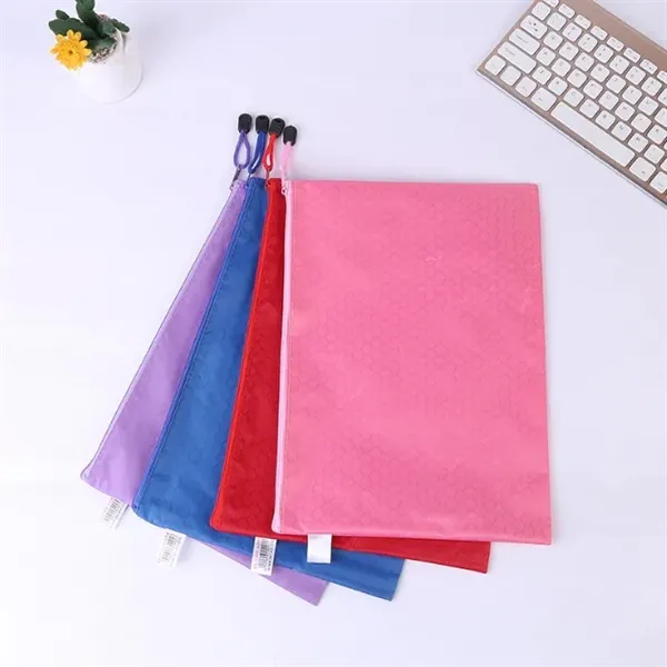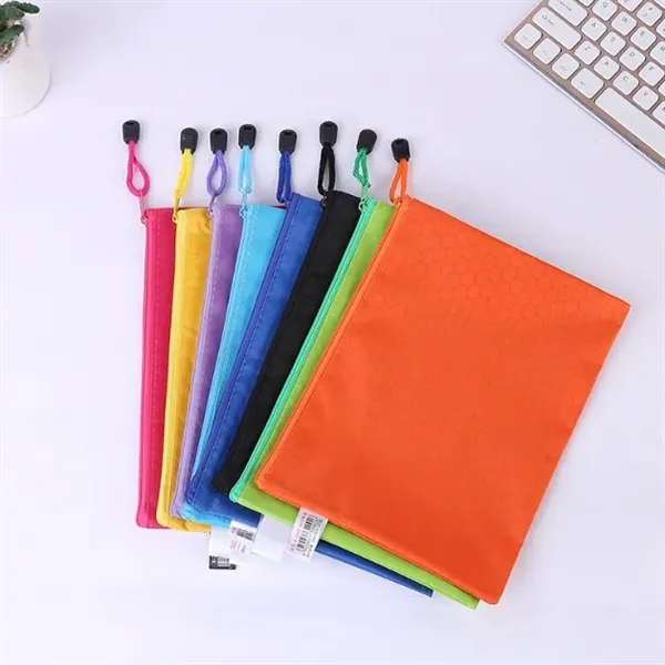 Introducing our versatile bag made from Oxford polyester, perfect for school, office, and various settings. Designed for everyone, this bag features a zipper seal and a football grain surface to ensure the privacy and security of your documents. Its durability and waterproof nature come from the PU coating on the inside.With dimensions of 9 9/20" W x 13 2/5" L, this bag is compact yet spacious, offering a stylish and practical solution for carrying documents and essentials. Embrace the durability and functionality of this bag in various aspects of your daily life.