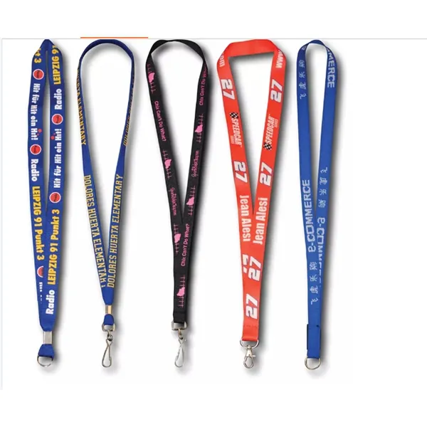 These custom polyester lanyards offer a near perfect balance of high performance product and a great low price. These are our most popular style of customized lanyard and feature top-quality polyester material along with an imprint of your logo. We use state-of-the-art screen printing that produces vibrant and highly wear-resistant printed lanyards. Your choice of a J-hook, keyring, bulldog or lobster claw is included. Enjoy free shipping and allow for 7 business days of lead time.