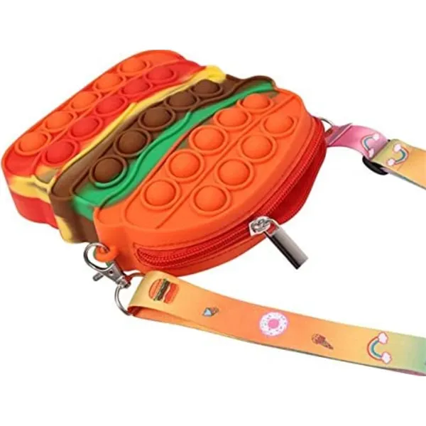 SiliconeImportedZipper closureHamburger Pop-On-it Fidget Cross Body BagSize Approx 5.5" x 5.5" x 1"It is not only a stress relief push pop bubble fidget sensory popper, but also a practical shoulder bag, which can hold wallets, keys, mobile phones, cosmetics and other belongingsMade of high-quality silicone material, feel soft, comfortable, durable and easy to clean. They are reusable and washable.This pop handbags is perfect for birthday party favors, school classroom rewards, classroom treasure box, carnival prizes, Christmas, Thanksgiving, Halloween, etc