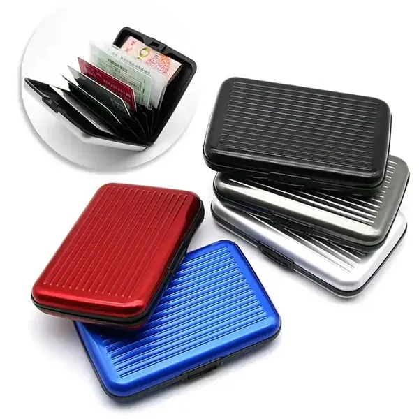 Protect your credit cards and cash with our Aluminum Wallet for both men and women! This RFID-blocking credit card holder case is water-resistant and measures 4.33x2.95x0.78 inches (LxWxH). The hard-shell design ensures durability, and with the doubled-slot size, it can accommodate at least 10 credit cards or less if you insert bills. The wallet has passed quality tests for the closure mechanism. Choose from metallic colors: Silver, Blue, Brown, Purple, Black, and Pink. Each purchase includes 1 wallet.