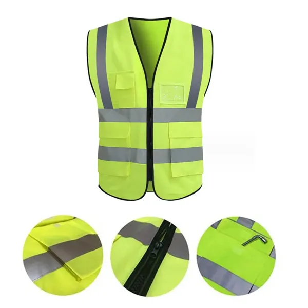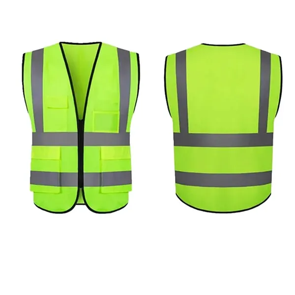 This high-visibility vest, crafted from 100% polyester reflective material, is machine washable and designed to ensure night-time visibility for safety. It features two vertical and two horizontal reflective strips, each 2" wide, on both the front and back, maximizing visibility in various weather and lighting conditions. Offering comprehensive protection, it#039;s ideal for use in construction, baggage handling, security, traffic control, surveying, landscaping, paving, railroad, and sanitation environments.